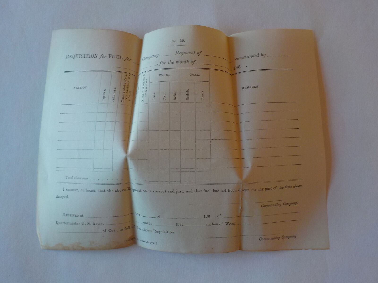 Title (ebay affiliate link): Civil War Unused Document Quartermaster U.S. Army Requisition For Fuel VTG Old N
