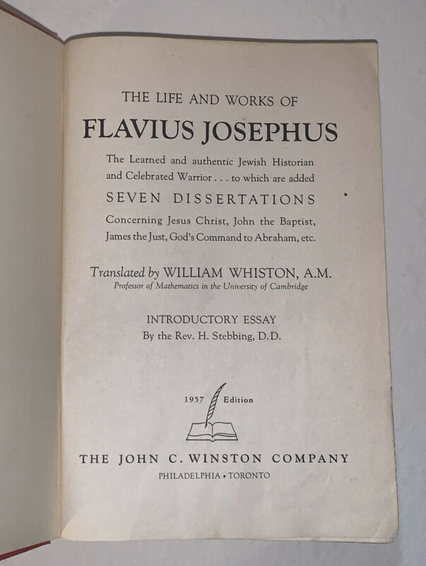 Title (ebay affiliate link): The Life and Works of Flavius Josephus Translated by William Whiston 1957