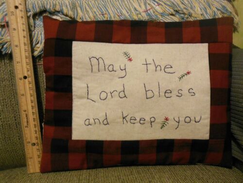 Title (ebay affiliate link): Buffalo Check Farmhouse Stitchery Pillow, hand embroidered and lightly stuffed