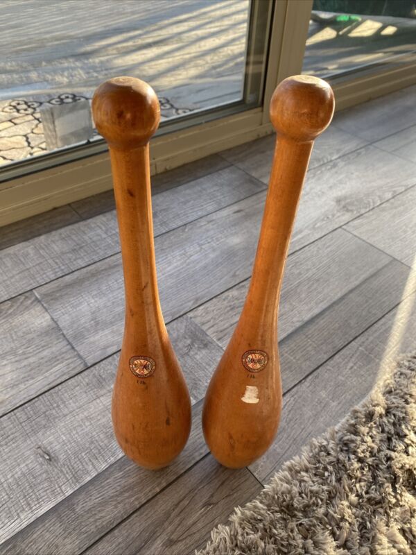 Antique Lot (2) Wood Juggling Exercise Pins 1LB Narragansett Machine Co Standard