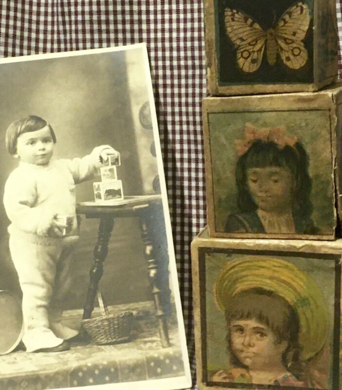 Title (ebay affiliate link): Antique Photo Child w Toys & Victorian Litho Stacking Blocks Animals / Children