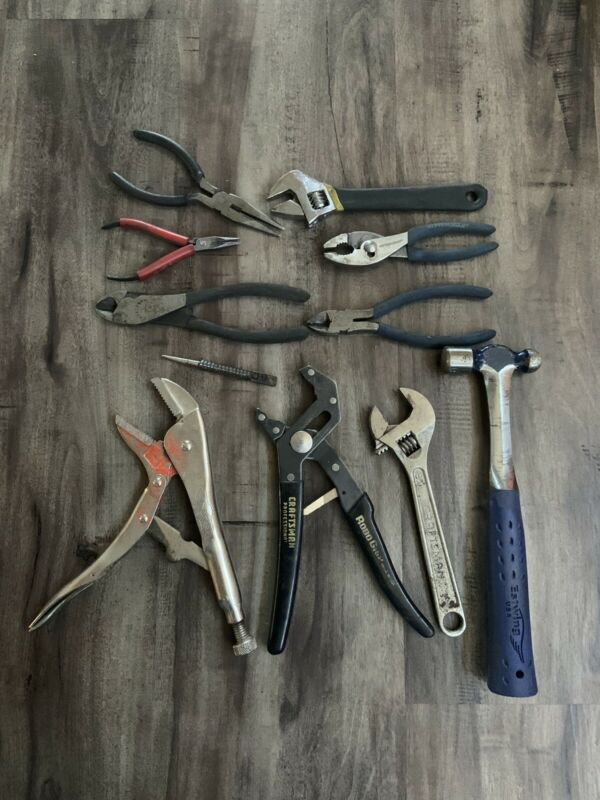Title (ebay affiliate link): Mixed Used Tool Box Lot - Wrench Vise Grip Hammer Robogrib Needle Nose Pliers