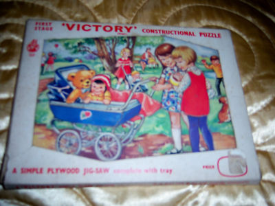 8.5" VINTAGE 1950's Wooden Doll's Pram Jigsaw And Tray