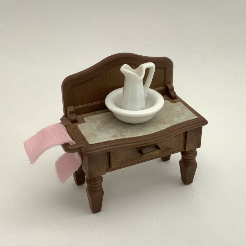 Vintage 1980s Tomy Sylvanian Families House Furniture - Washstand + Ceramic Jug