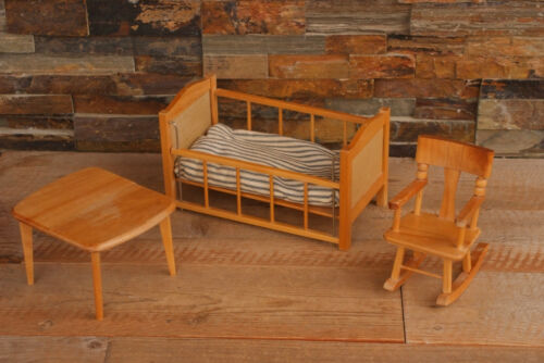 Title (ebay affiliate link): Vintage Strombecker Wood Doll Furniture for 8"~Crib~Rocking Chair~Kitchen Table