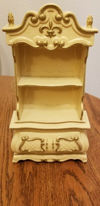 Vintage Plastic Dollhouse Hutch Dresser Cream Ivory with Gold Accents