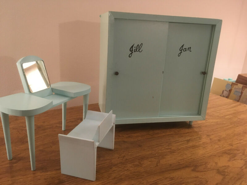 Title (ebay affiliate link): Vintage Vogue Jill/Jan Green Wardrobe & Dresser with Mirror and chair Furniture