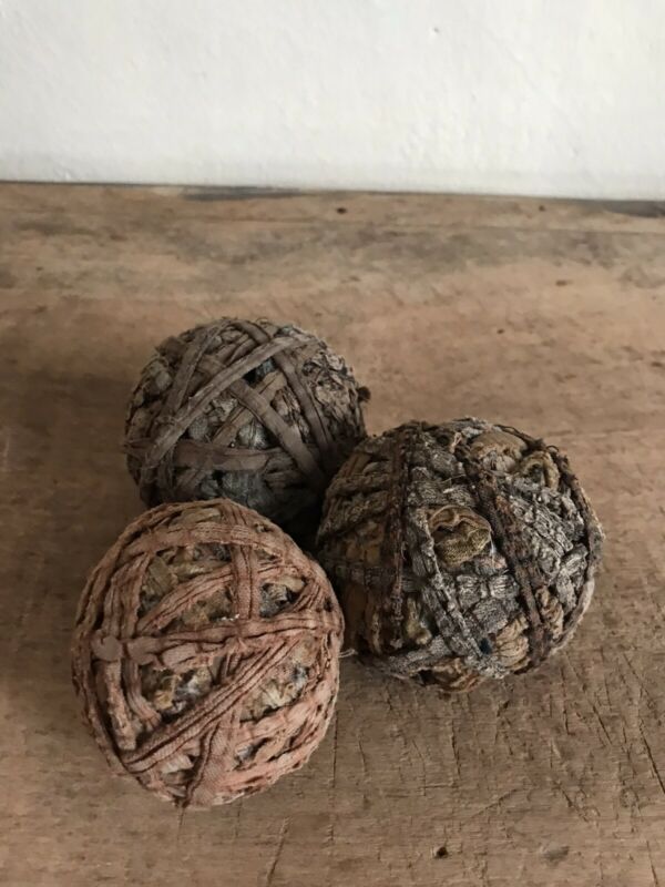 Title (ebay affiliate link): 3 Handmade Early Antique BEST Brown Blue Rag Rug Balls Textile AAFA