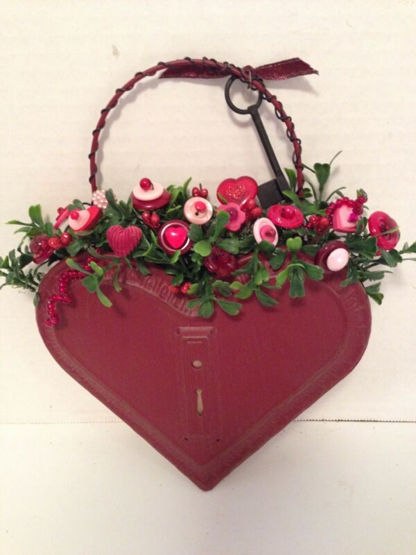 Title (ebay affiliate link): VTG Valentine Button Bokay/Heart Wall Pocket-Farmhouse-Country Cottage Chic