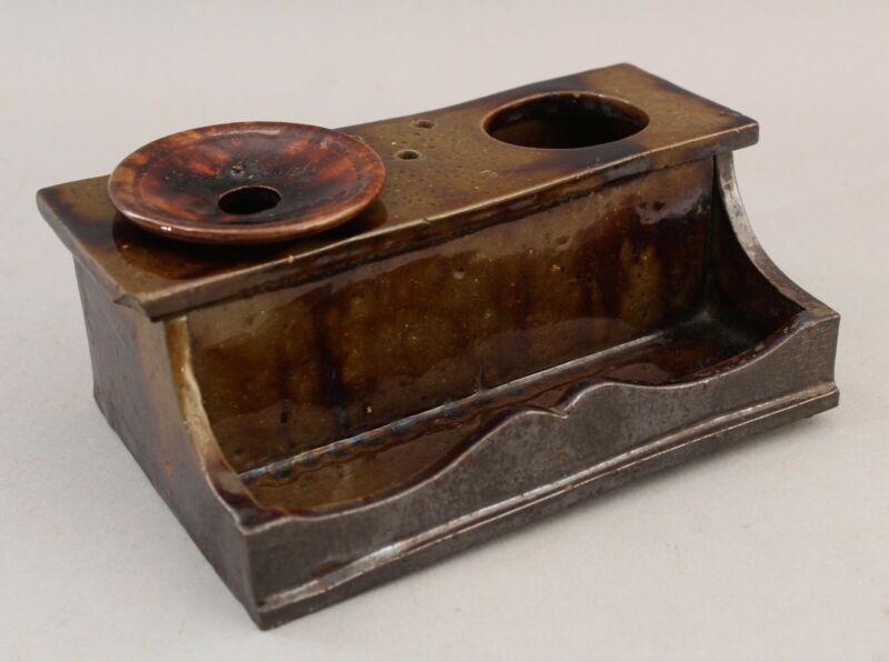 Title (ebay affiliate link): RARE Antique Early 19thC Stoneware Handmade Desktop Inkwell Writing Inkstand