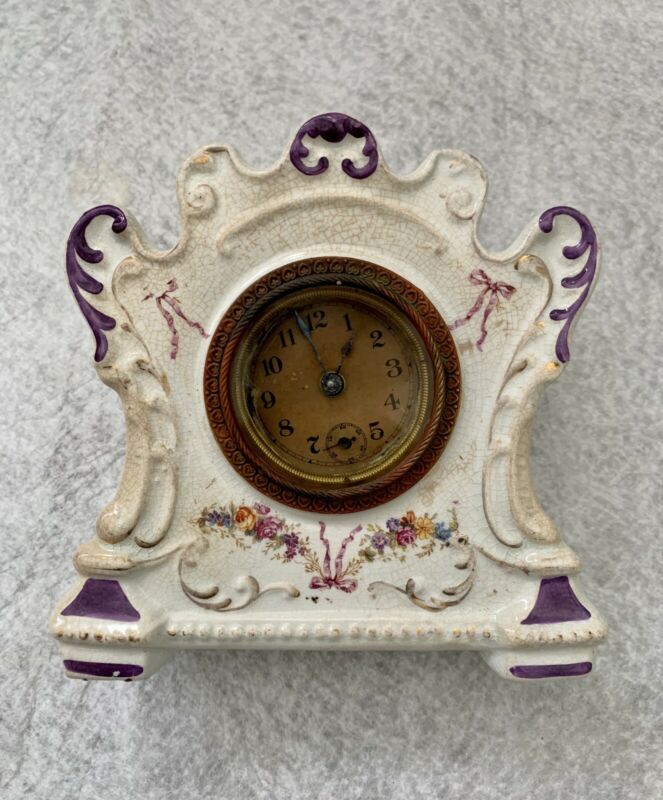 Title (ebay affiliate link): Antique 1900 W.M.L. Gilbert Wind Up Mantel Clock - Poppy Floral Porcelain Case