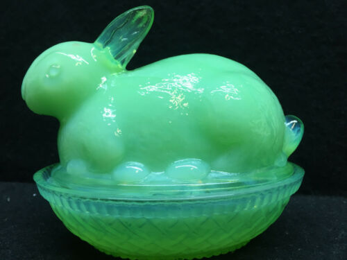 Title (ebay affiliate link): Jadeite Green Milk glass bunny rabbit on nest basket dish easter butter jade egg
