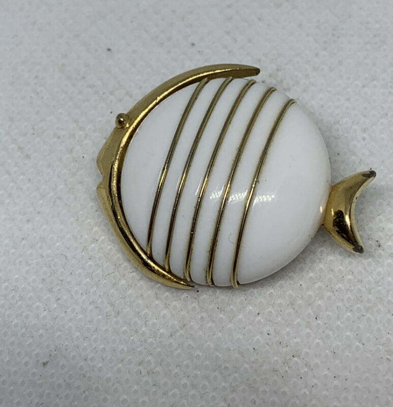 Crown Trifari Jelly Belly Angel Fish Milkglass Brooch Pin