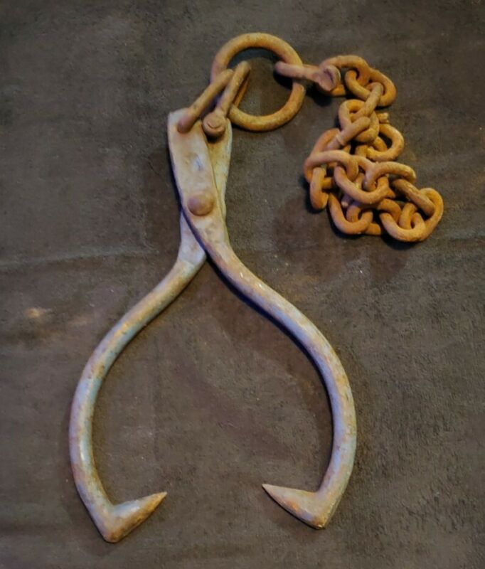 Title (ebay affiliate link): Antique Cast Iron Grab Hook Log Skid Tongs Hook Gripper Blacksmith Made