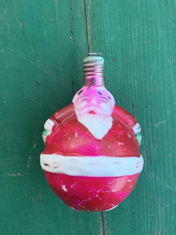 Vtg Rare Round Santa Claus Christmas Milk Glass Figural C6 Light Bulb Works