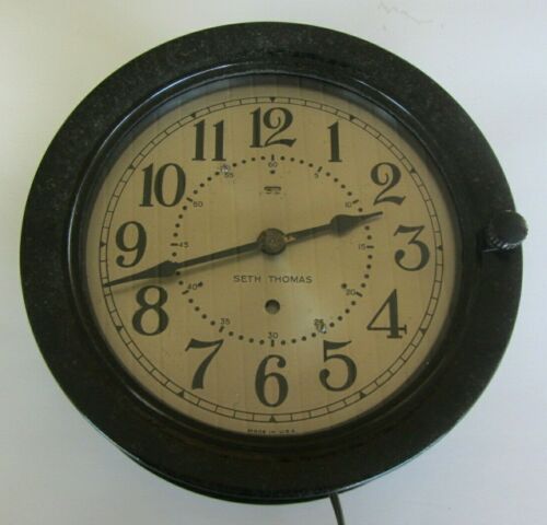 Title (ebay affiliate link): Vintage Mid Century Seth Thomas USA Nautical Port Hole Window Electric Clock