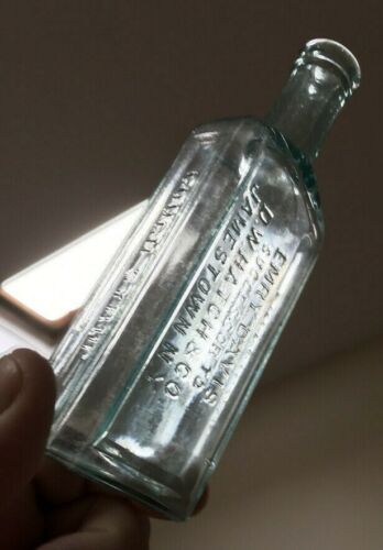 Title (ebay affiliate link): Blown Bottle COUGH SYRUP DW HATCH JAMESTOWN NY 1800s Deep Aquamarine Nice!!