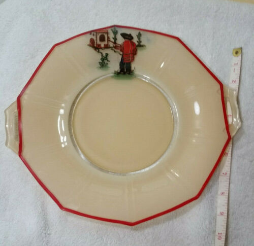 Title (ebay affiliate link): Vtg Hand Painted 11 1/2" Dbl Handled Glass Cake Plate-Spanish-Mexican Design