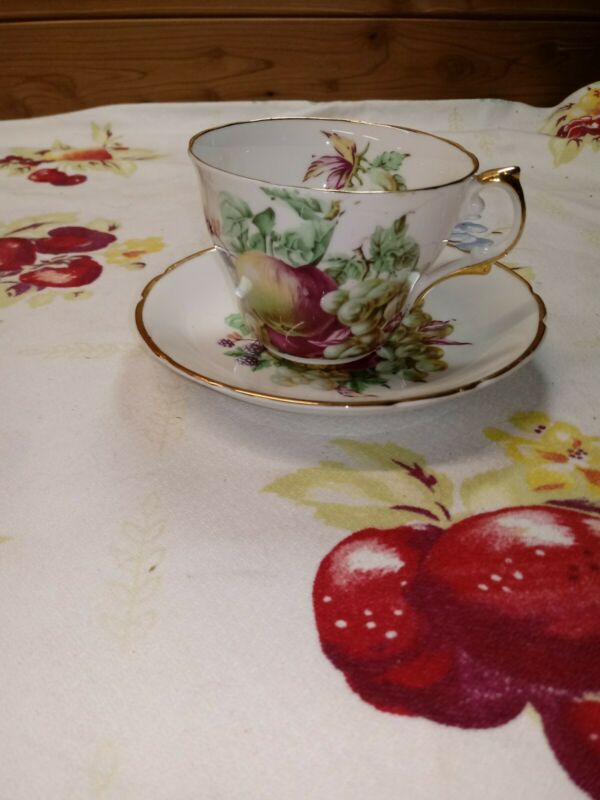 Title (ebay affiliate link): Vintage Regency Bone China Fruit /Gold Tea Cup & Saucer Made in England