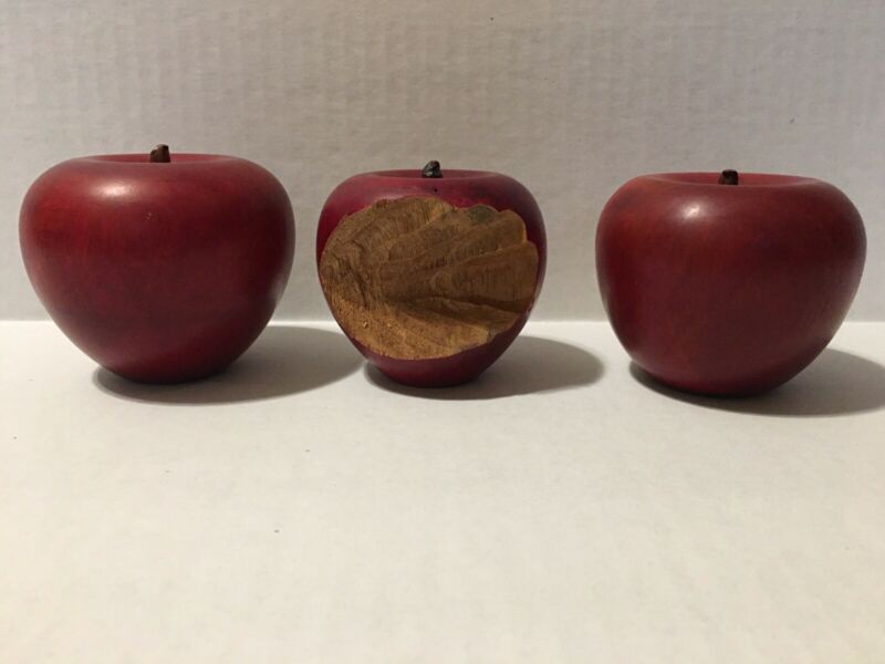 Title (ebay affiliate link): Vintage/Antique*Lot/Set of 3 Wooden Red Wood Apples*Bite Mark*Wood Fruit