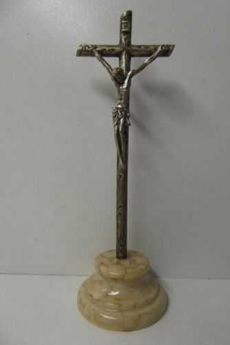 Title (ebay affiliate link): OLD CAST METAL CHURCH CROSS CRUCIFIX STATUE MADE IN ITALY FAUX MARBLE RESIN BASE