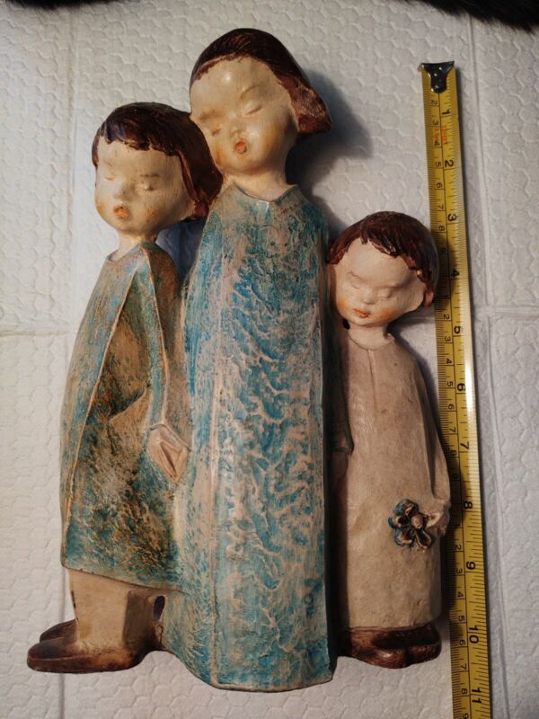 Title (ebay affiliate link): Vtg Wooden Statue Children Figurine 2 Boys, 1 Older Girl Carved painted Family