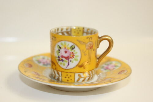 Vintage Miniature Yellow Tea Cup & Saucer Hand Painted Japan