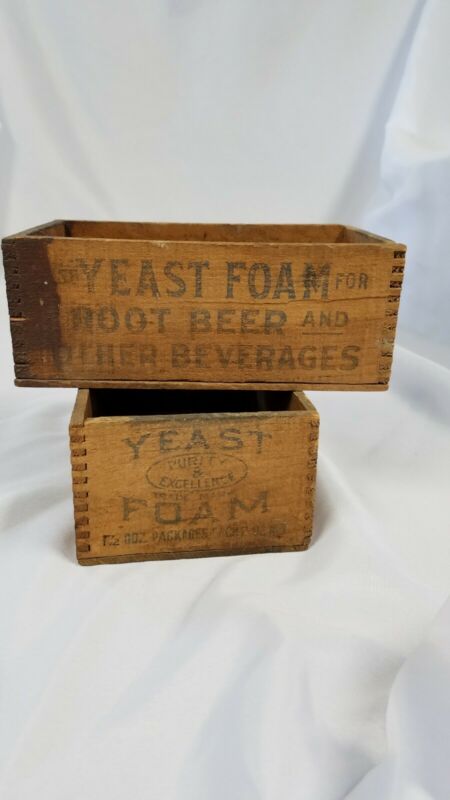 ANTIQUE YEAST FOAM WOODEN BOXES- SET OF 2- DOVETAIL CONSTRUCTION