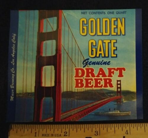 Title (ebay affiliate link): LOS ANGELES CA Original Golden Gate Draft Beer Label Bridge Ship Maier Brewing