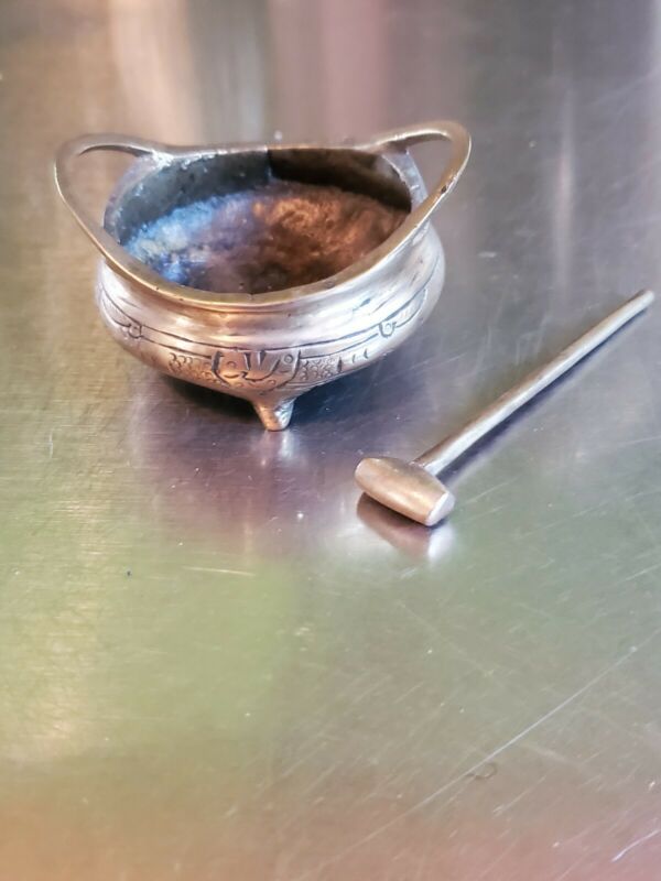 Title (ebay affiliate link): Chinese Brass Mortar Pestal Vintage handled pot hammer mallet detail asian