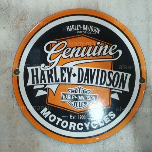 GENUINE HARLEY 12 INCHES ROUND VINTAGE ENAMEL SIGN