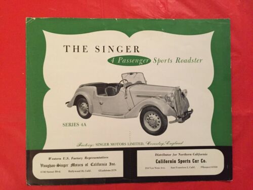 Title (ebay affiliate link): 1949 Singer "SERIES 4A 4 PASSENGER SPORTS ROADSTER" Car Dealer Showroom Brochure