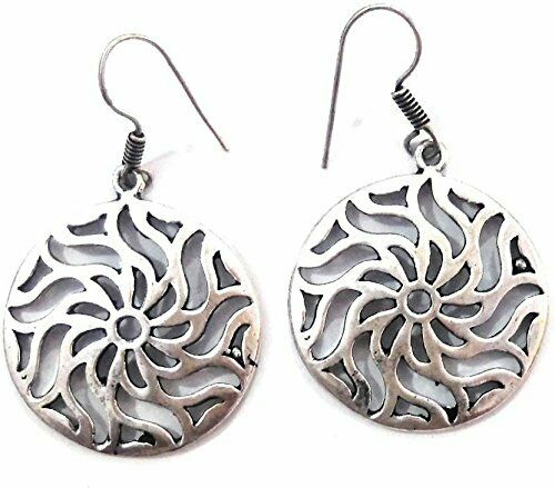 Title (ebay affiliate link): silver oxidised brass metal earrings round shape with floral design Alloy Dangl