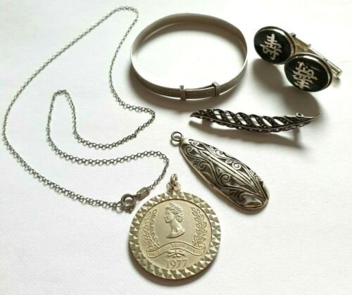 Title (ebay affiliate link): JOB LOT ANTIQUE/VINTAGE SILVER ITEMS, COMPLETE, NICE ART DECO, EDWARDIAN ETC