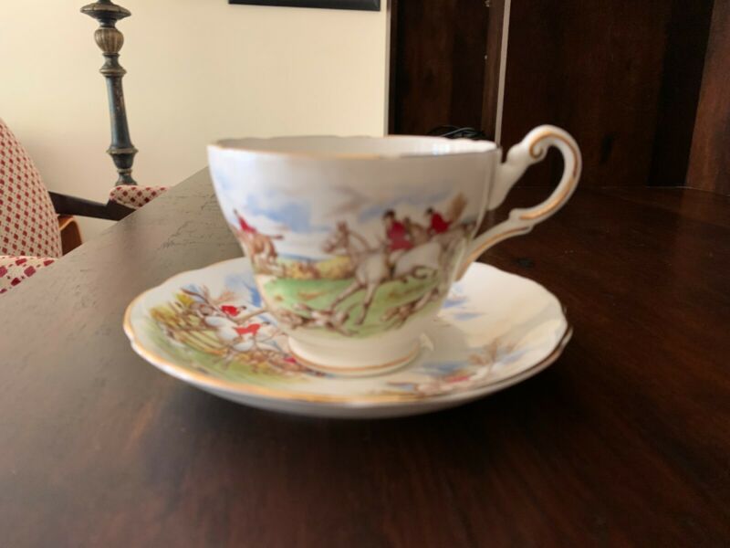 Title (ebay affiliate link): GROSVENOR BONE CHINA, JACKSON & GOSLING-TEA CUP & SAUCER, Fox Hunt/Horse Theme