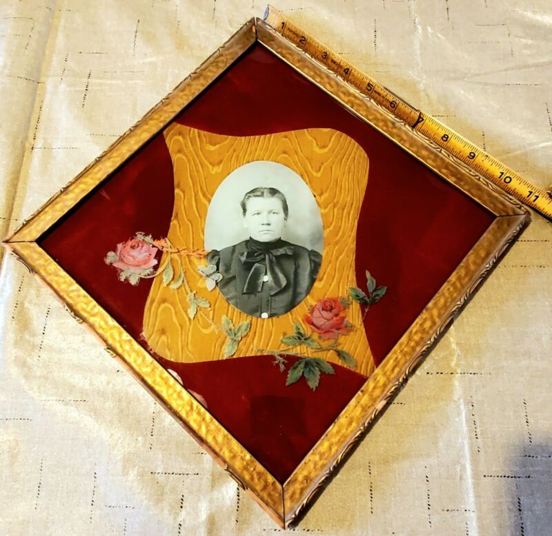 Title (ebay affiliate link): Vtg ANTIQUE 1800''s Reverse Painted Glass PHOTO Gold Wooden FRAME-Lot~RED ROSES
