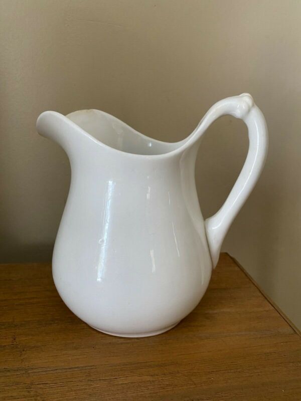 Vintage White Ironstone Pitcher Patina Farmhouse