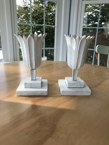 PAIR OF ANTIQUE METAL PLANTERS/URN WITH WOOD BASE - 8 1/2" TALL
