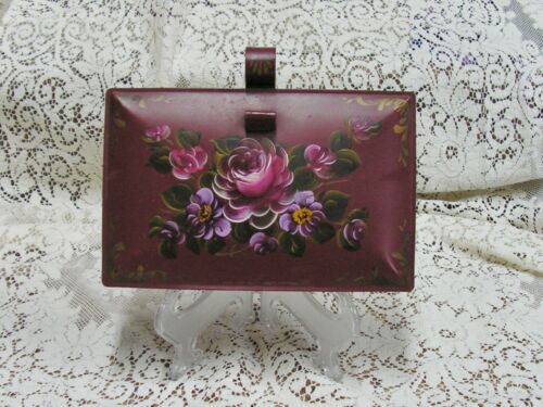vtg hand painted burgundy red tole metal roses butler decoware toleware tray