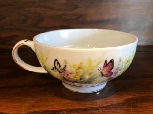 Vintage Fine Bone China Tea Coffee Cup Meadow Butterflies gold trim unmarked