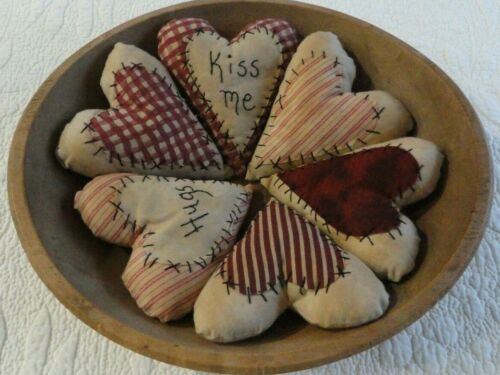 ~pRiMiTiVe Stitchery Lot of 6 Appliqued Valentine Heart Pillows~Bowl Fillers~