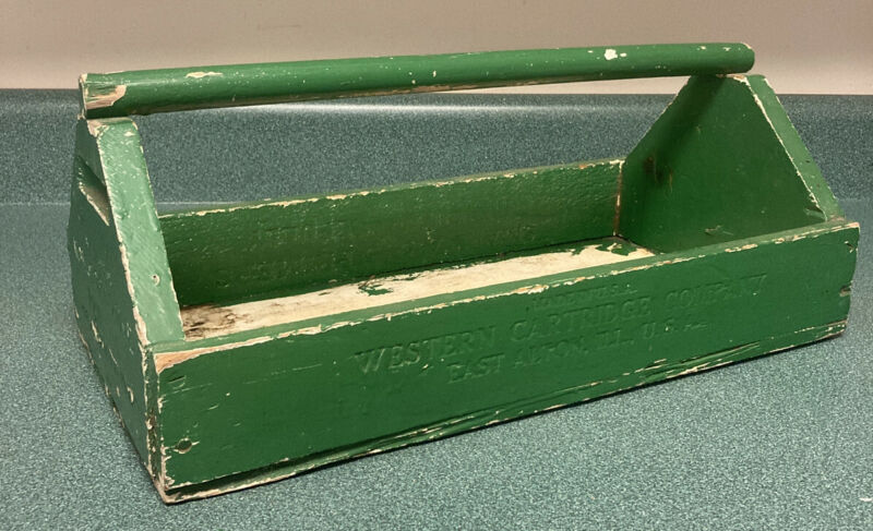 Vintage Hand Made Wooden Carpenters Tool Box Tote Western Cartridge Co Primer