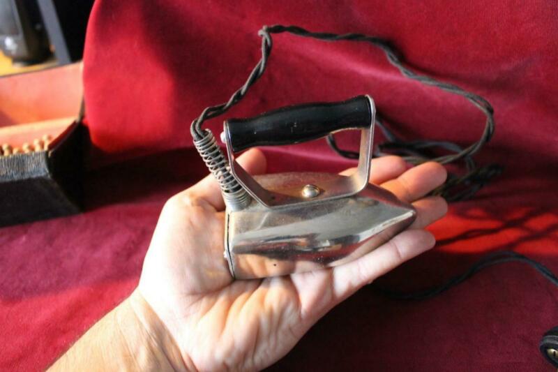 Rare Antique "Baby Betsy Ross" Electric Portable Iron W/Case & Mini Clothes Pins
