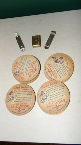 LOT OF 23 ASSORTED VINTAGE BALLANTINE ALE & BEER COASTERS & 2 OPENERS& MATCHES