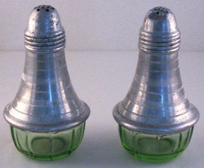 GREEN DEPRESSION GLASS SALT & PEPPER SHAKERS