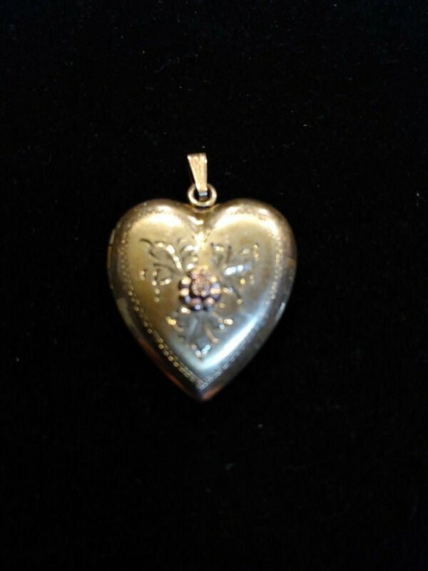 Antique vintage 1/20 12k (Gold Filled) heart locket 7/8 inch wide picture locket