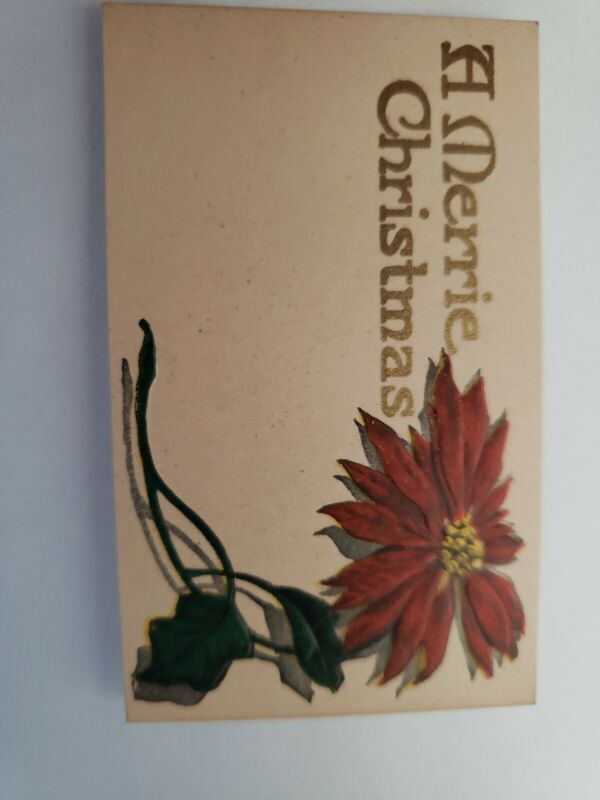 Title (ebay affiliate link): 10 1900s Embossed Christmas Gift Tags...A Merrie Christmas Poinsettia Antique