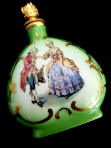 Title (ebay affiliate link): ANTIQUE ROMANTIC SCENE PORCELAIN CZECHOSLOVAKIA PERFUME BOTTLE-CROWN TOP