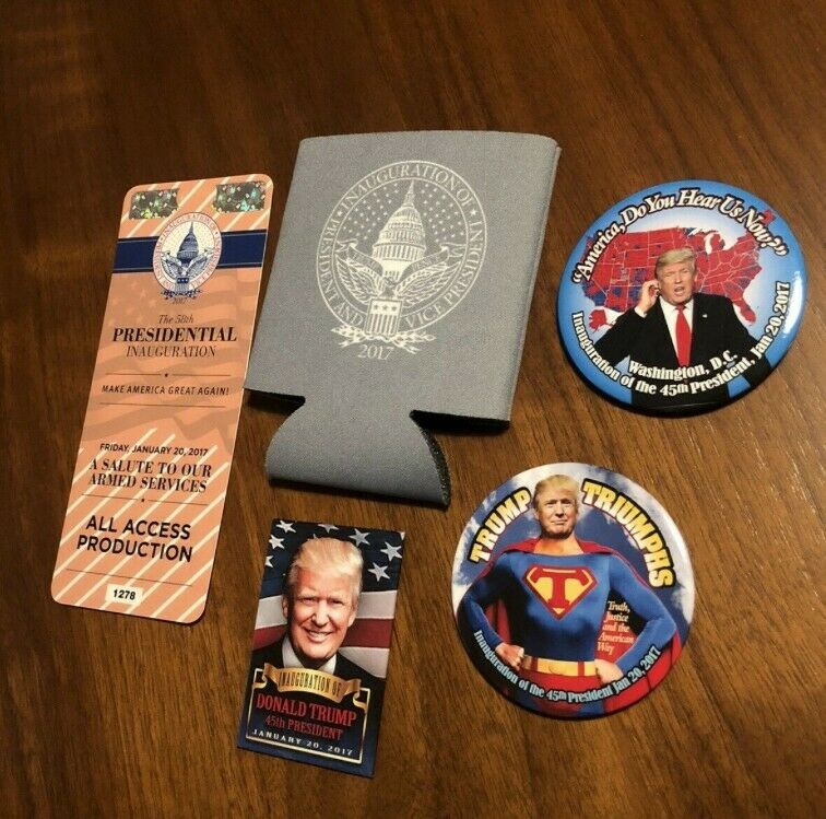 Title (ebay affiliate link): President Donald Trump Inauguration Ticket Mega Pack! DC Magnet Buttons Koozie!