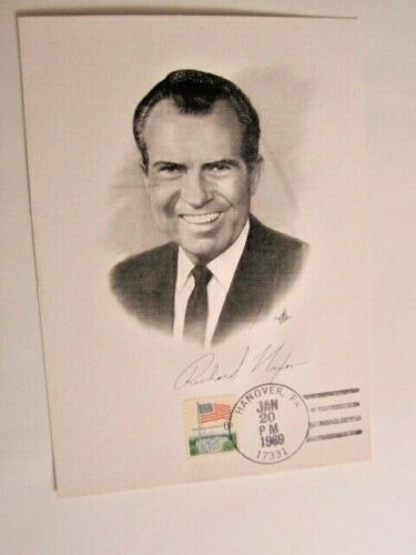 PRES. RICHARD M. NIXON SIGNED PHOTO--POSTMARKED JAN. 20, 1969--INAUGURATION DAY